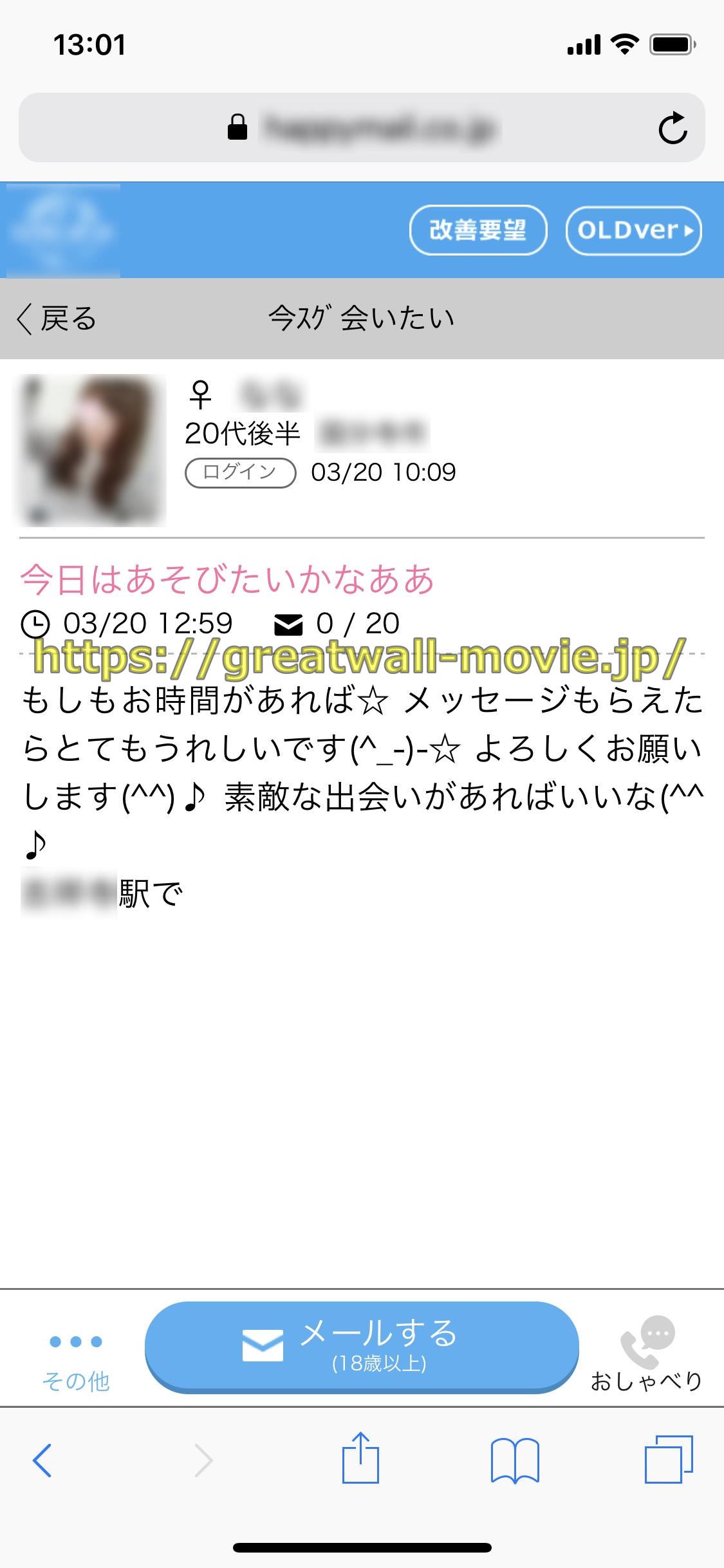 またナイスバディの素人のセフレの生保レディのOLは、出会系SNSのハピメの「今スグ会いたい」の掲示板で
