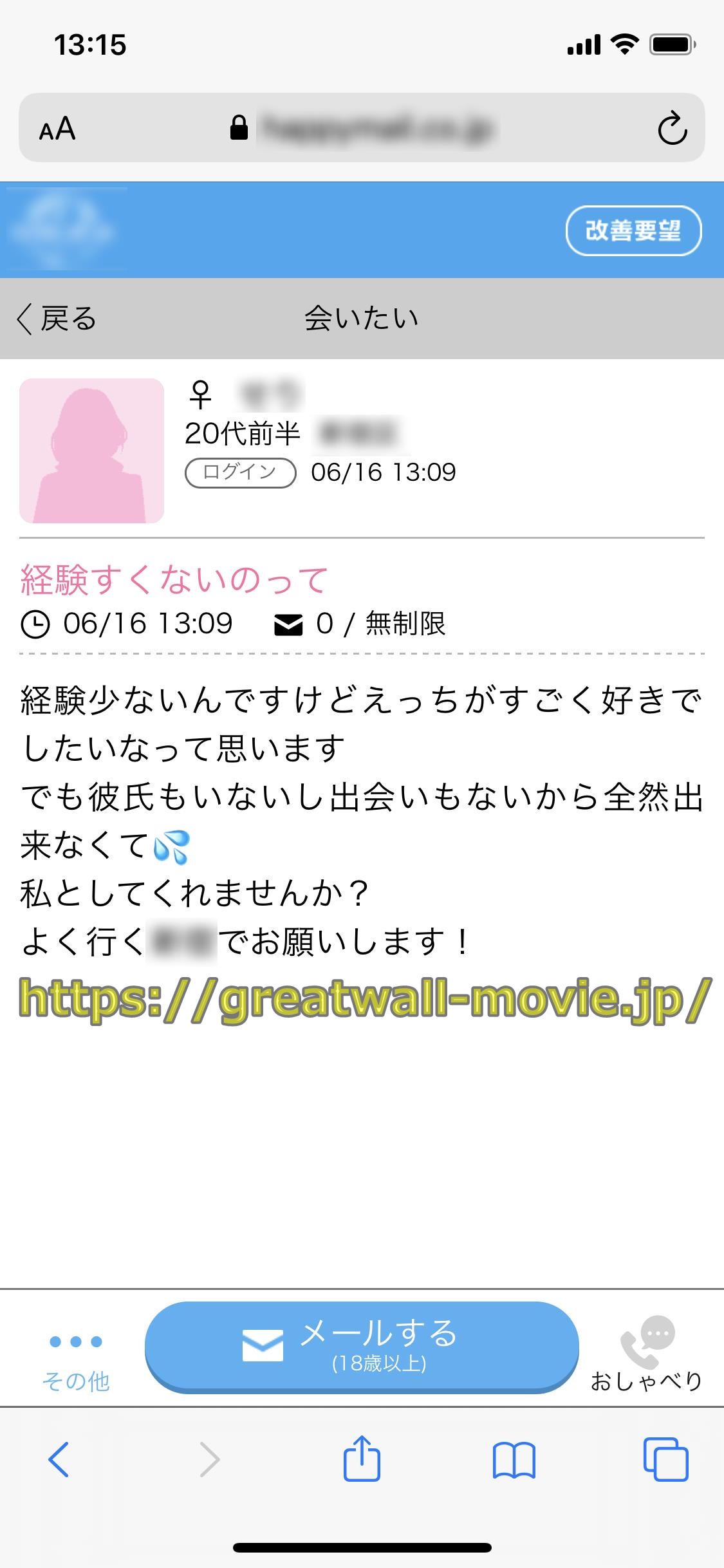 こういうふうにハピメのような出逢い系SNSの掲示板に、積極的にsexフレンドを探しているという書き込みをする女の子は、会って今すぐオフパコセックスやらせてくれる女性なので、出合い系マッチングサイトの掲示板でめっけたらすぐメールを送りましょう(^○^)